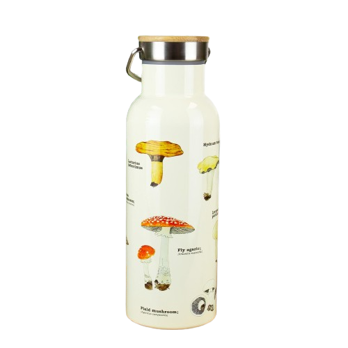 This stainless steel water bottle is the perfect gift for mushroom lovers who want a durable and insulating container for their beverages. European mushroom drawings are accompanied by their Latin names.