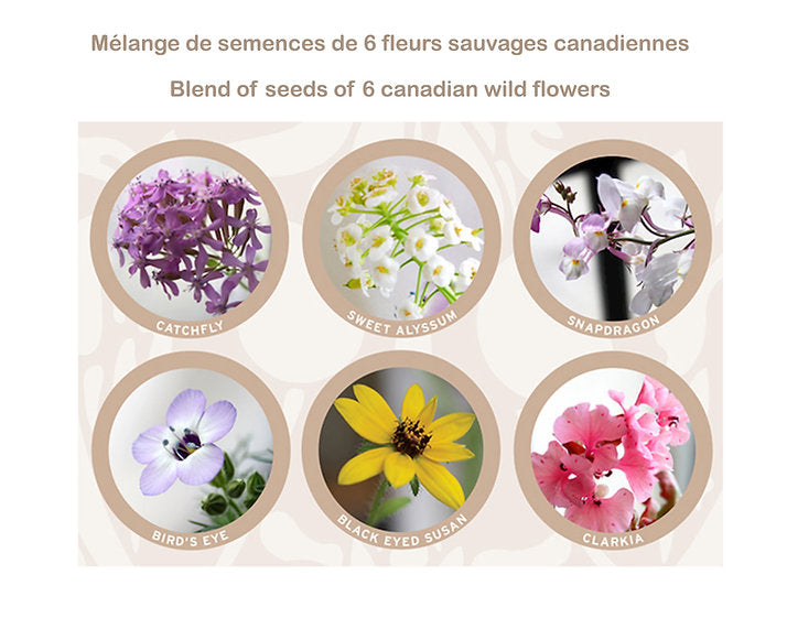 The paper is made of a blend of 6 Canadian flower seeds: Catchfly, Sweet Alyssum, Snapdragon, Bird’s Eye, Black Eyed Susan, and Clarkia.
